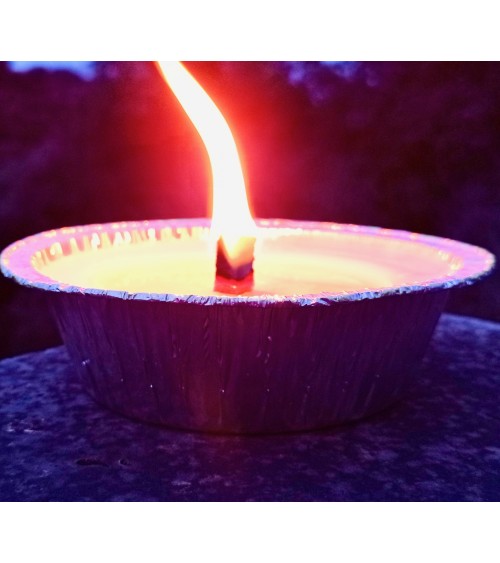 Cette bougie d'extérieur en coupelle aluminium brûle 8 h 00 heures avec une grande flamme. Son support en aluminium est lesté.
