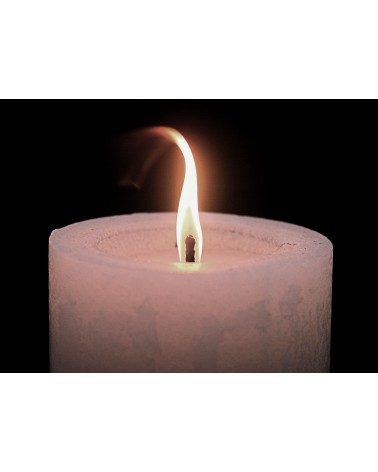 faite à la main. Ces bougies existent en noir ou blanc avec un diamètre de 15 cm et 10 cm de hauteur. Temps de combustion : 60 heures. Couleur blanche
