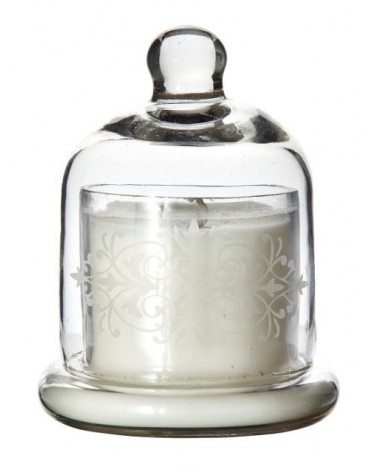 Bougie parfumée fleur d'oranger en pot en verre sous une cloche en verre décorée
